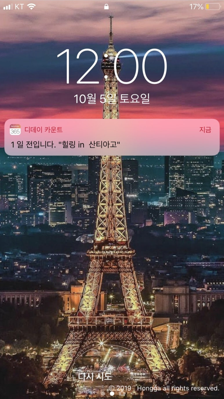 띠링🎵하고 알림이 울렸다. 이제 하루 남았네>_<
