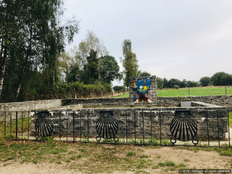 날이 밝으면서 노란화살표는 물론이고 산티아고의 상징물들이 잘 보인다.