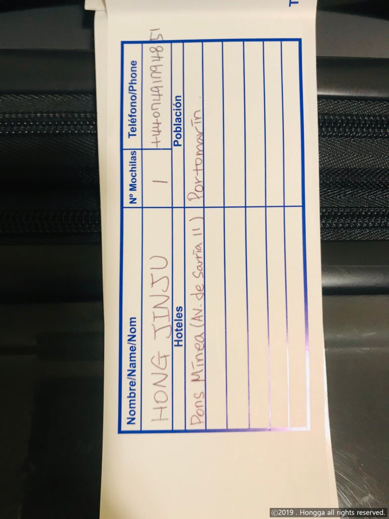 이름과 연락처를 작성하고, 받는 도시와 알베르게 이름을 적고 택을 붙여서 프론트에 맡기면 끝.