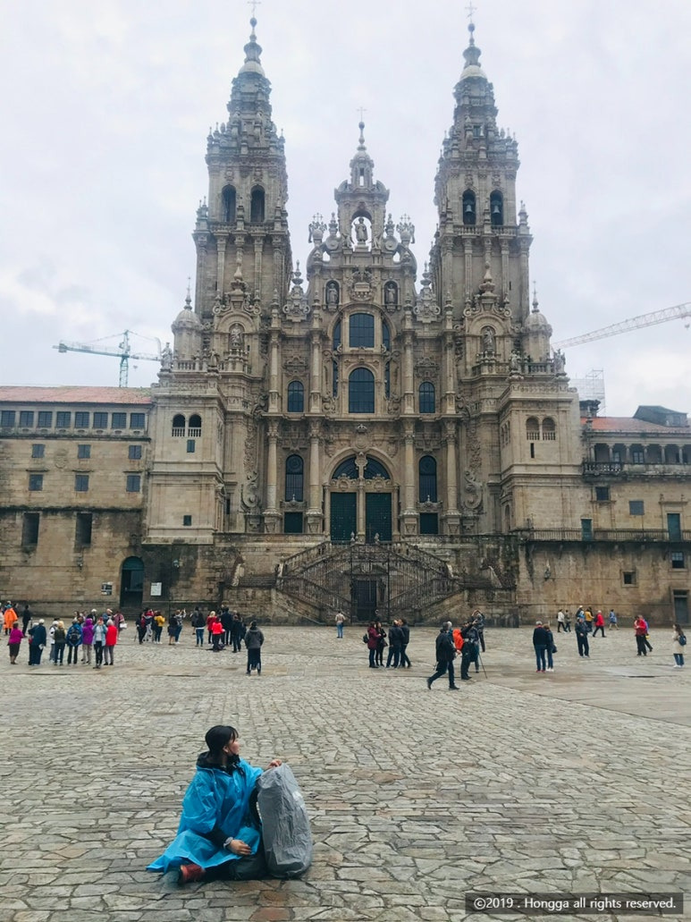 순례자들이 조금 더 많아졌고, 사진을 또 찍고 한참 또 성당과 도착해서 환호하는 순례객들을 바라봤다.