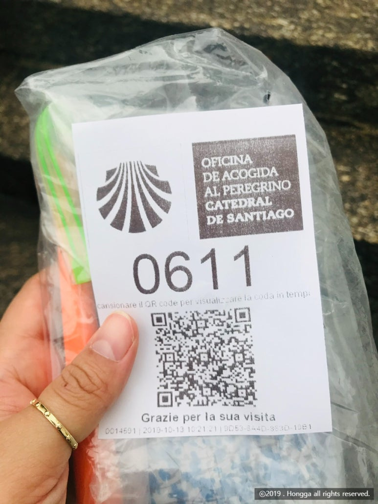 순례인증서를 받으려면 순례자 사무소에 가서 대기번호를 받아야 하는데,