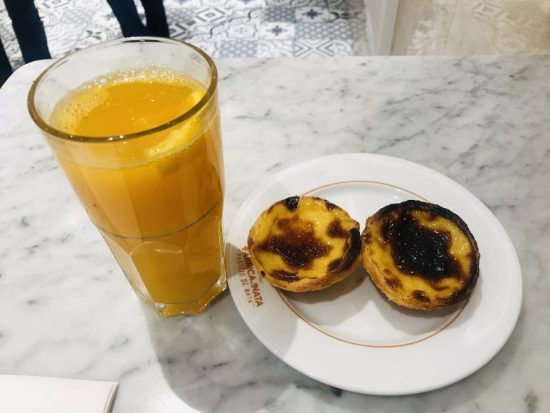 사진이 잘 나오는 곳이라 여기저기에 사진을 찍는 사람들이 많았다. 에그타르트는 커피와 조합이 좋은데, 파브리카에서는 오렌지주스와 함께 마셔봤다. 에그타르트는 만테이가리아보다 조금 더 달달한 맛이다. 페이스트리의 바삭함과 크림의 달큰함이 잘 어울린다. 간혹 페이스트리가 축축해져서 특유의 바삭함를 잃어버리는 경우도 있다. 오렌지주스는 100% 착즙주스라 정말 맛있다. 오렌지 착즙기를 집에 들이고 싶은 심정이다.
