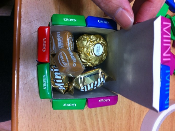 이제 상자를 열어 자신의 취향에 따라 준비한 초콜렛을 넣어봅니다:)